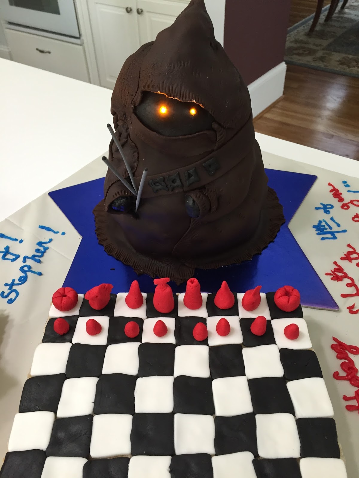 Since it was a birthday cake, the Jawa is holding 3 sparkler candles!